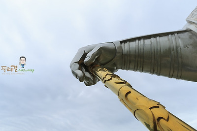 36명의 왕을 상징하는 기둥이 있는 동상입니다.