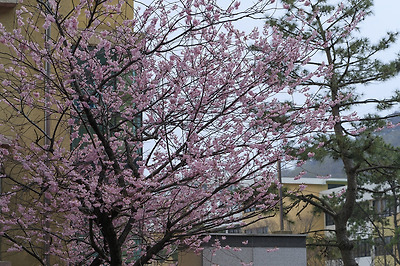 이곳 부산 배화학교 정문에는 가장 먼저 꽃을 피우는 잔털벚꽃이랍니다.