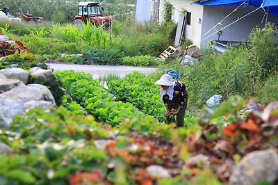 텃밭에서 밭일을 하시는 할머니 건강하시길 기원해 봅니다.