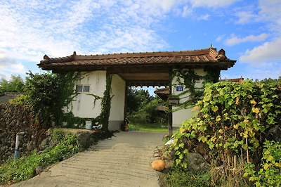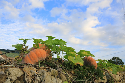 돌담위에 누른 호박이 정겨움을 더해줍니다.