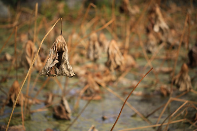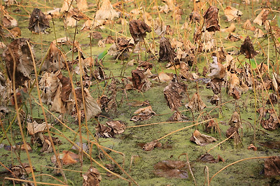 연잎들이 퇴색되어 고개를 숙이고 있네요.