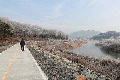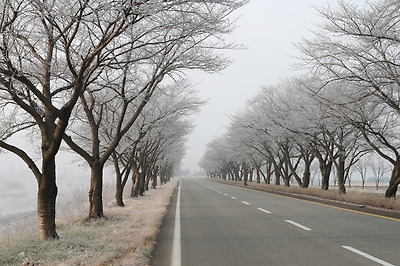 유명 포인터 돌다리로 가는 길에 겨울에 벚꽃이 핀 줄 알았더니