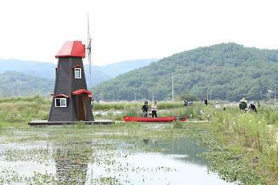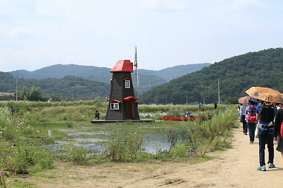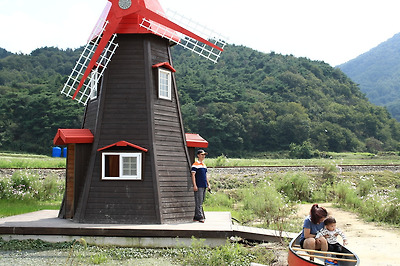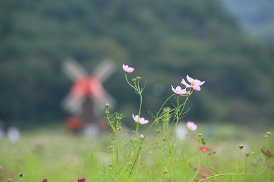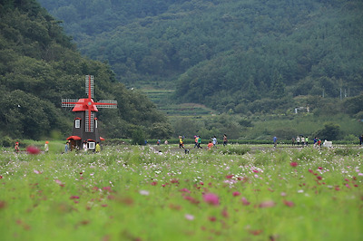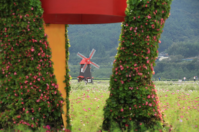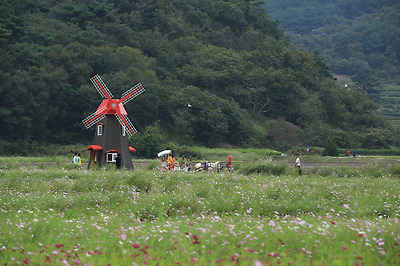 코스모스 밭에 이국적인 풍차가 작년에 새로 생긴거 같은데