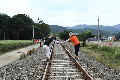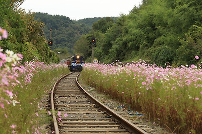 대신 기찻길에서 코스모스와 함께 추억을 만들어 보았답니다.