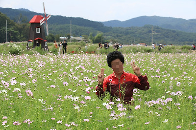 어느 할머니도 코스모스 축제장에서 예쁜 모습으로 추억을 만들고 있답니다.