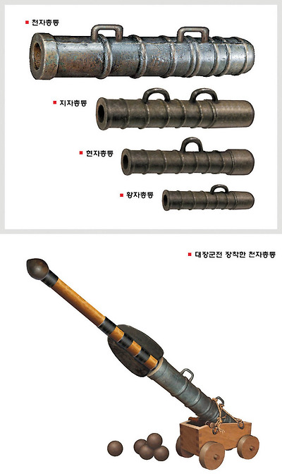 총통은 조선수군의 자랑거리였지만 실전에서는 화약재고때문에 마음대로 사용할 수 없었습니다. 특히 대장군전과 천자총통은 사용이 극히 힘들었다는 기록도 있습니다.