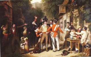 그림 설명: William Redmore Bigg이 그린 Trepanning a Recruit (신병 꼬시기). 영국 모집관이 호구를 잡아서 입대지원서에 서명하게 만들고 있습니다.