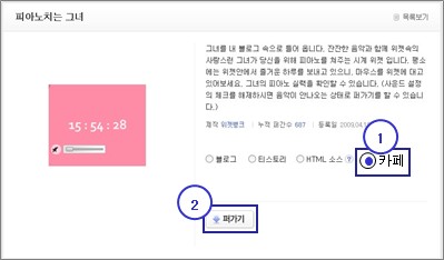 2. 개별 위젯 화면에서 카페를 선택한 후 [퍼가기] 버튼을 클릭해 주세요.