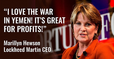 록히드 마틴CEO가 예멘에 전쟁이 나는 것은 이익이 되기 때문에 자기는 전쟁을 사랑한다고 말하고 있네요. 그 이익을 위해 예멘인을 저렇게 처참하게 죽이고 520만명을 굶어 죽이고 있습니다.