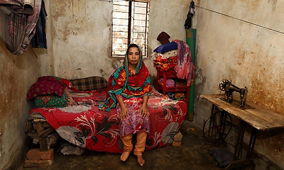 ▲Bangladeshi garment worker Shima, 26, at home in Dhaka. She lost her foot to infection and now wears a prosthetic. An Oxfam report found many women who work for Australian brands are unable to feed their families or get treatment when ill. Photograph: Fabeha Monir/OxfamAUS