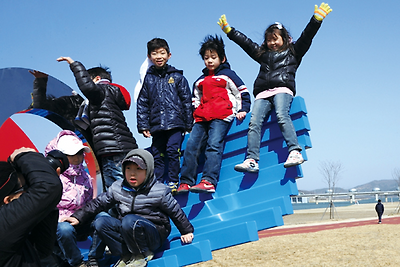 | 4대강살리기 사업이 마무리가 되어가며 강이 되살아나고 강변에 아이들 웃음이 번진다. 경기도 여주군 이포보 인근 당남리섬에서 가족과 함께 시간을 갖는 아이들 모습이 즐겁다. |