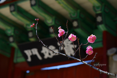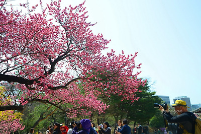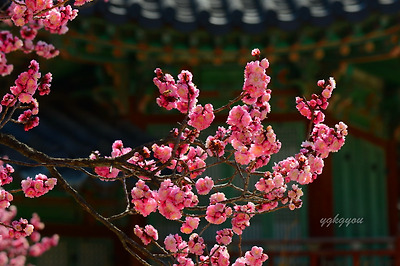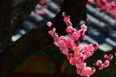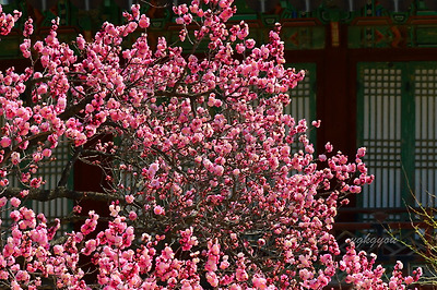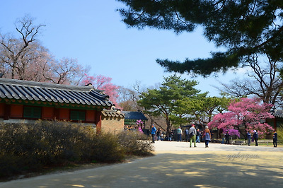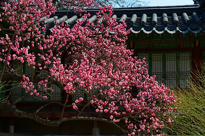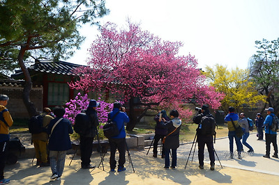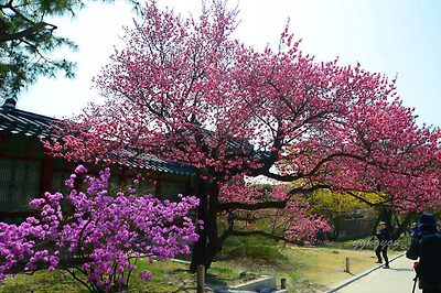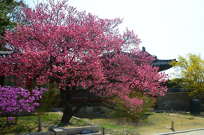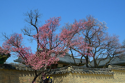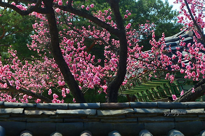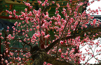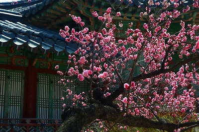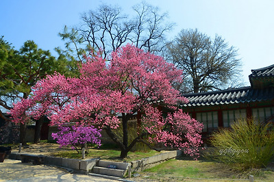 창덕궁에는 두 그루의 홍매화나무가 마주보고 서있다.