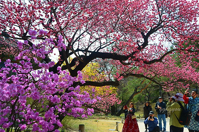 이 홍매화나무들은 매년 3월 말일 전후하여 만개하는데, 그 때쯤이면 아침 9시만 넘어서면 사진 찍는 사람들로 붐빈다.