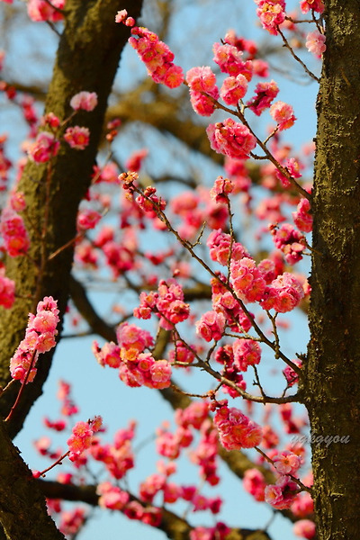 창덕궁의 마주보는 두 그루 홍매화는 둘 다 만첩홍매화이다.