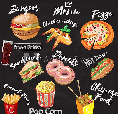 hot dog, Buffalo chicken wing, french fries