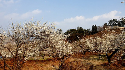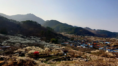 복잡한 청매실농원을 지나 다사마을쯤 오니 한가했다. 산 중턱까지 매화꽃이 피어 꽃대궐이다.